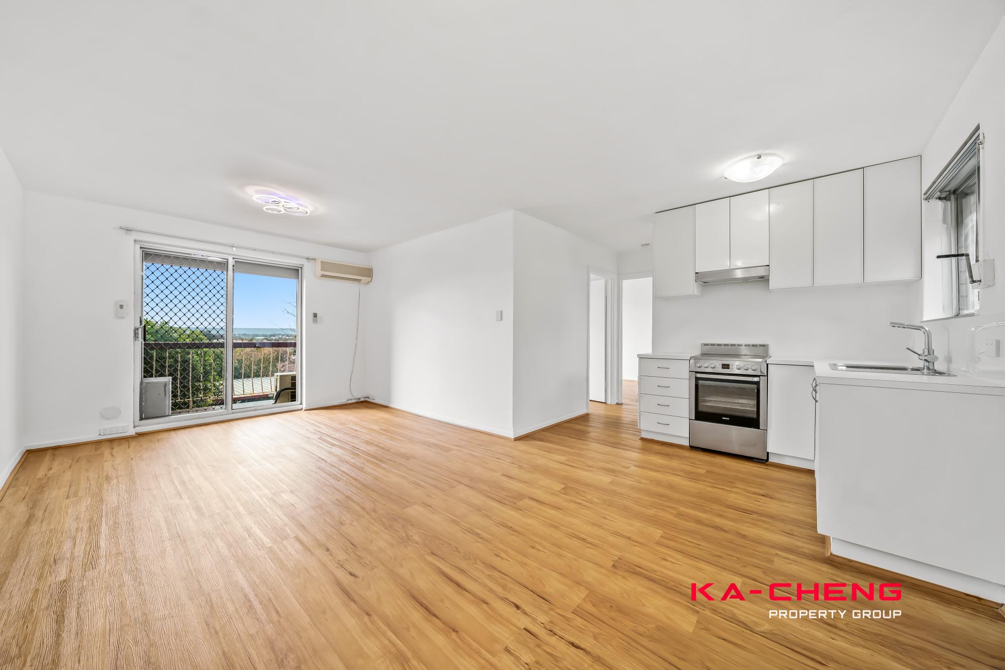 Inside, you’ll find a bright open living and dining area with beautiful floorboards underfoot, flowing seamlessly out to a private balcony – the perfect spot for your morning coffee or an evening wind-down. The kitchen is thoughtfully designed with good storage and functionality, making everyday living simple and convenient.
